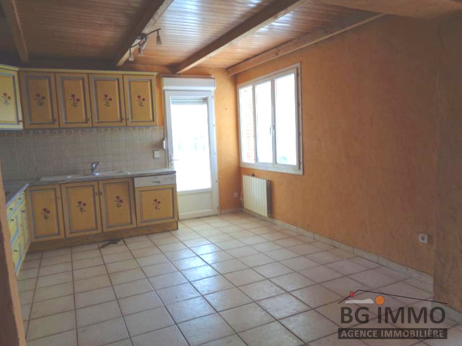 VIAS - Proche des commerces, villa de plain pied sur une parcelle de 470 m² comprenant : une belle véranda, une pièce de vie avec sa cuisine équipée donnant sur la véranda côté jardin, un vaste hall d'entrée, deux belles chambres, une salle d'eau, un WC et un beau garage.