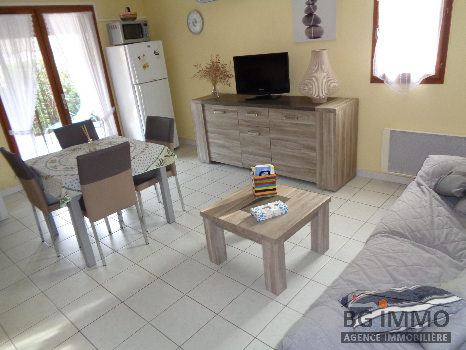VIAS - C'est un coup de coeur ! Belle villa de vacance, à 500m des plages, dans une petite copropriété très agréable, avec piscine, en excellent état, idéal pour y vivre à l'année ou pour un pied à terre dans une station balnéaire en plein essor elle comprend : un beau séjour avec sa cuisine moderne et équipée donnant sur terrasse exposée sud, 2 chambres, une salle d'eau et 2 WC. Côté annexe vous profiterez d'un cellier avec branchement machine et d'une place de parking privée. Villa vendue meublée. Il n'y a qu'à poser vos valises.